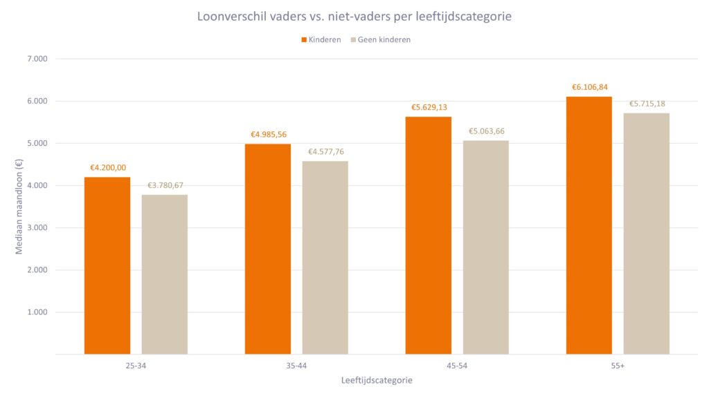 “Of iemand al dan niet kinderen heeft, zou geen rol mogen spelen in de verloning. En toch stellen we duidelijke verschillen vast. Internationaal onderzoek suggereert dat werkgevers vaders associëren met stabiliteit, toewijding en verantwoordelijkheid. Kwaliteiten die zij belonen met meer vertrouwen, promotiekansen en salarisverhogingen. Daarnaast kunnen vaders zelf geneigd zijn meer uren te werken of extra verantwoordelijkheden op te nemen, om financieel te voorzien in het gezinsleven.”